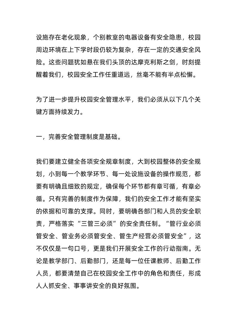 校长在学校安全工作会议上讲话:绷紧安全弦,共筑校园“安全网” 04-19 发言稿 1.43k ——预览已结束,还剩3页未读——开通会员后可免费下载高清完整文档 资源下载此资源下载价格为15米,VIP免费,请先登录 资源下载下载价格15 米VIP免费请先登录 0 0