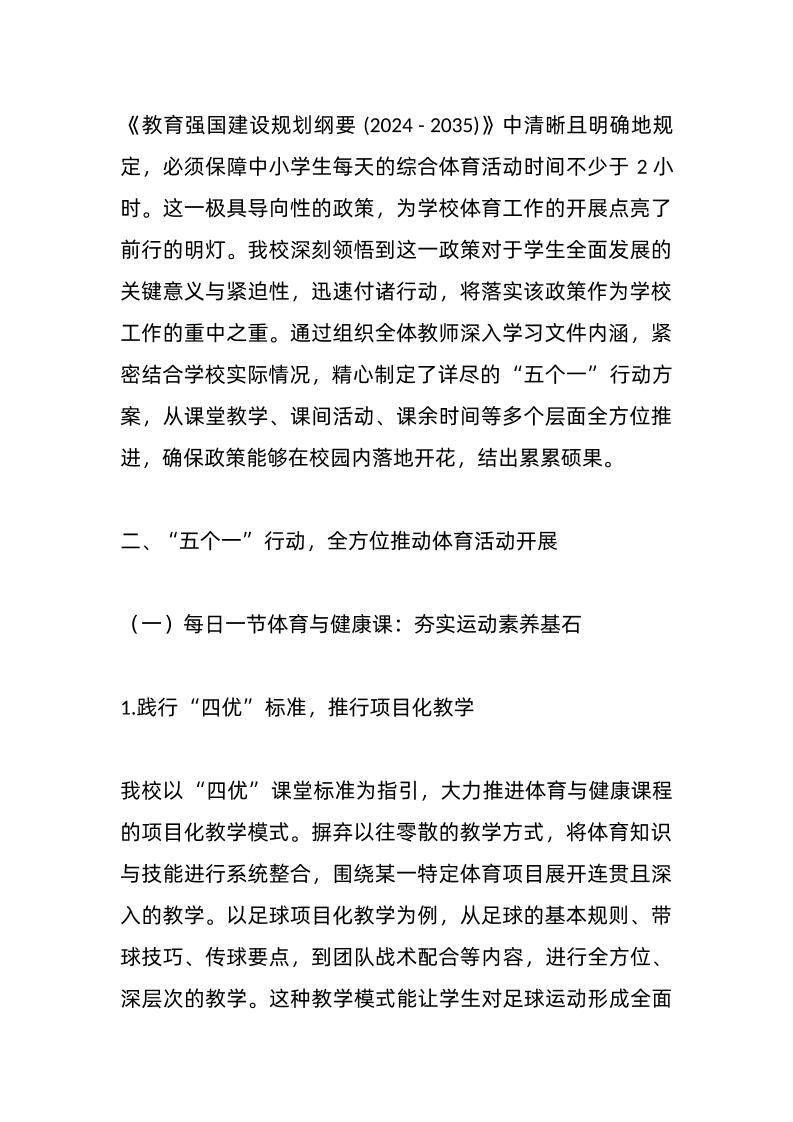 中小学落实每天体育2小时开展情况,校长汇报发言:从政策到行动,如何让学生体育两小时落地生花 04-20 发言稿 1.34k ——预览已结束,还剩6页未读——开通会员后可免费下载高清完整文档 资源下载此资源下载价格为15米,VIP免费,请先登录 资源下载下载价格15 米VIP免费请先登录 0 0