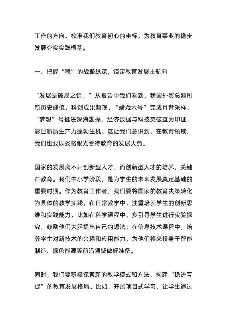 中小学校长在全体教师大会上发言:聚焦两会报告,教育“稳”步前行 04-21 发言稿 1.13k ——预览已结束,还剩3页未读——开通会员后可免费下载高清完整文档 资源下载此资源下载价格为15米,VIP免费,请先登录 资源下载下载价格15 米VIP免费请先登录 0 0