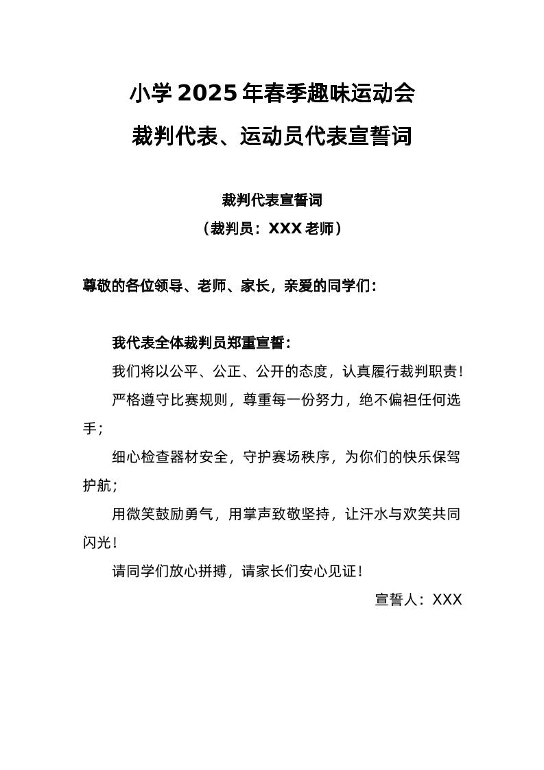 2025年趣味运动会裁判代表、运动员代表宣誓词 04-22 发言稿 1.19k ——预览已结束,还剩1页未读——开通会员后可免费下载高清完整文档 资源下载此资源下载价格为15米,VIP免费,请先登录 资源下载下载价格15 米VIP免费请先登录 0 0