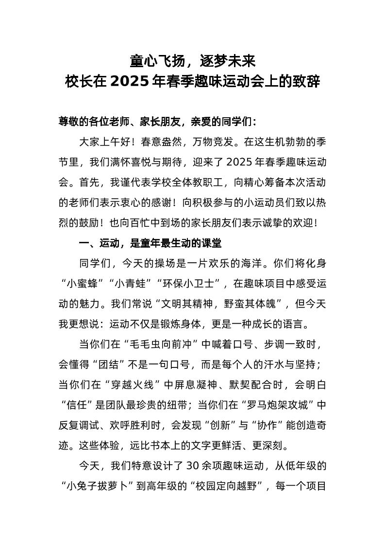 校长在2025年春季趣味运动会上的致辞 04-22 管理相关 746 ——预览已结束,还剩2页未读——开通会员后可免费下载高清完整文档 资源下载此资源下载价格为15米,VIP免费,请先登录 资源下载下载价格15 米VIP免费请先登录 0 0