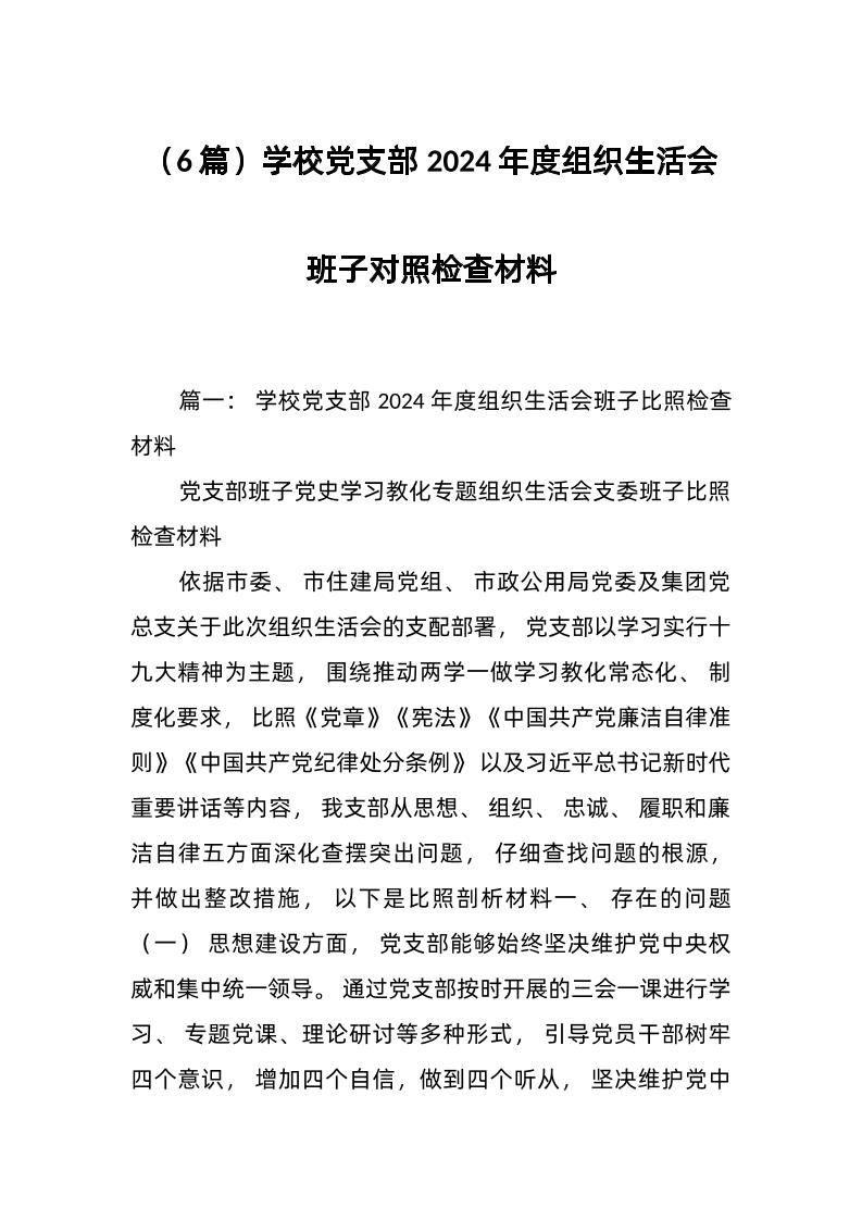 (6篇)学校d支部2024年度组织生活会班子对照检查材料