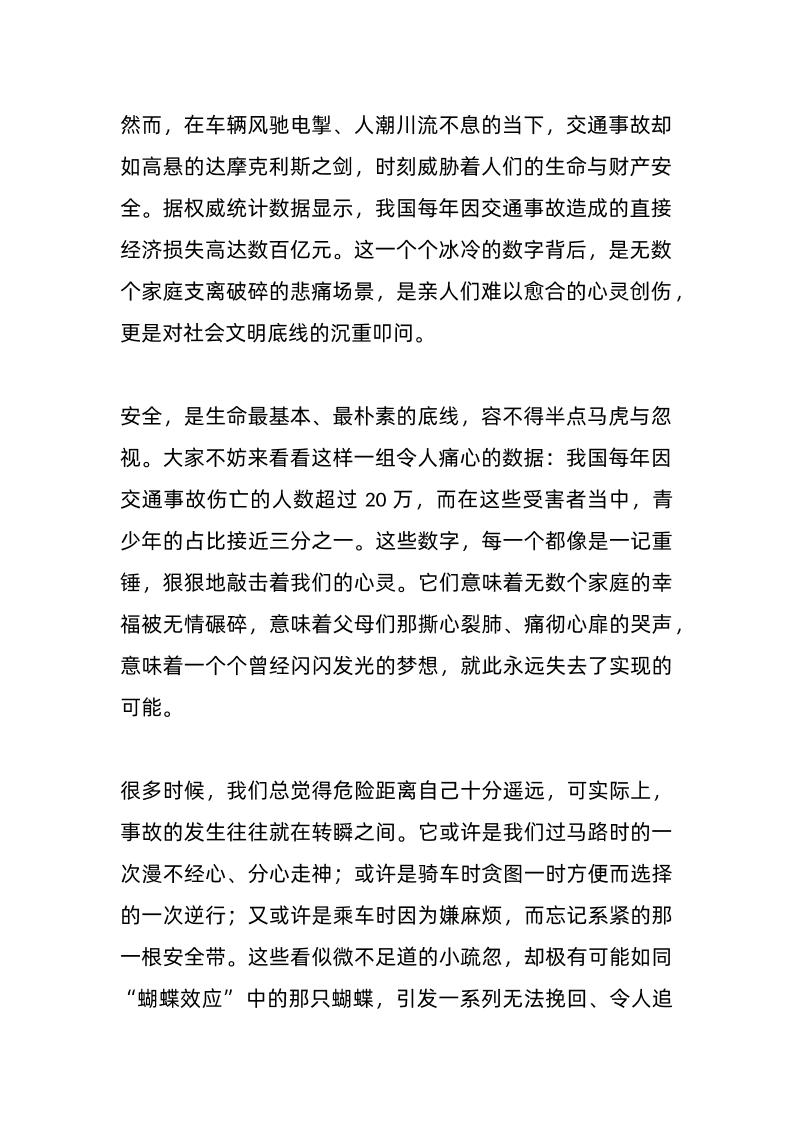 校长在国旗下讲话:别让交通规则成为生命的“催命符” 04-25 国旗下讲话 659 ——预览已结束,还剩2页未读——开通会员后可免费下载高清完整文档 资源下载此资源下载价格为15米,VIP免费,请先登录 资源下载下载价格15 米VIP免费请先登录 0 0