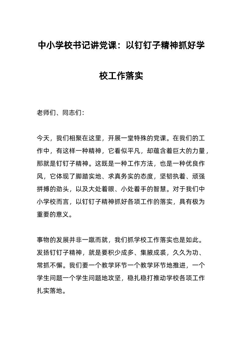中小学校书记讲d课:以钉钉子精神抓好学校工作落实 04-30 管理相关 1.25k ——预览已结束,还剩3页未读——开通会员后可免费下载高清完整文档 资源下载此资源下载价格为15米,VIP免费,请先登录 资源下载下载价格15 米VIP免费请先登录 0 0