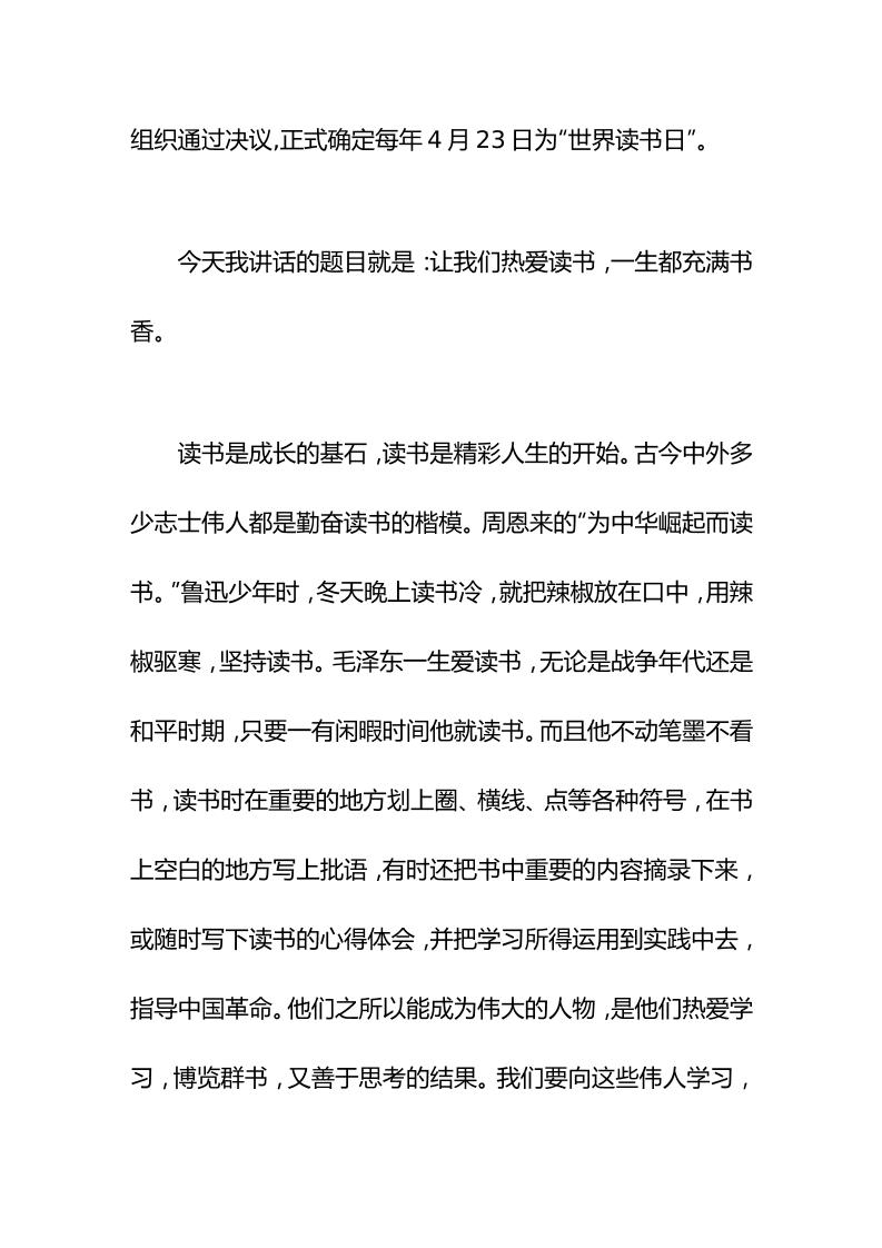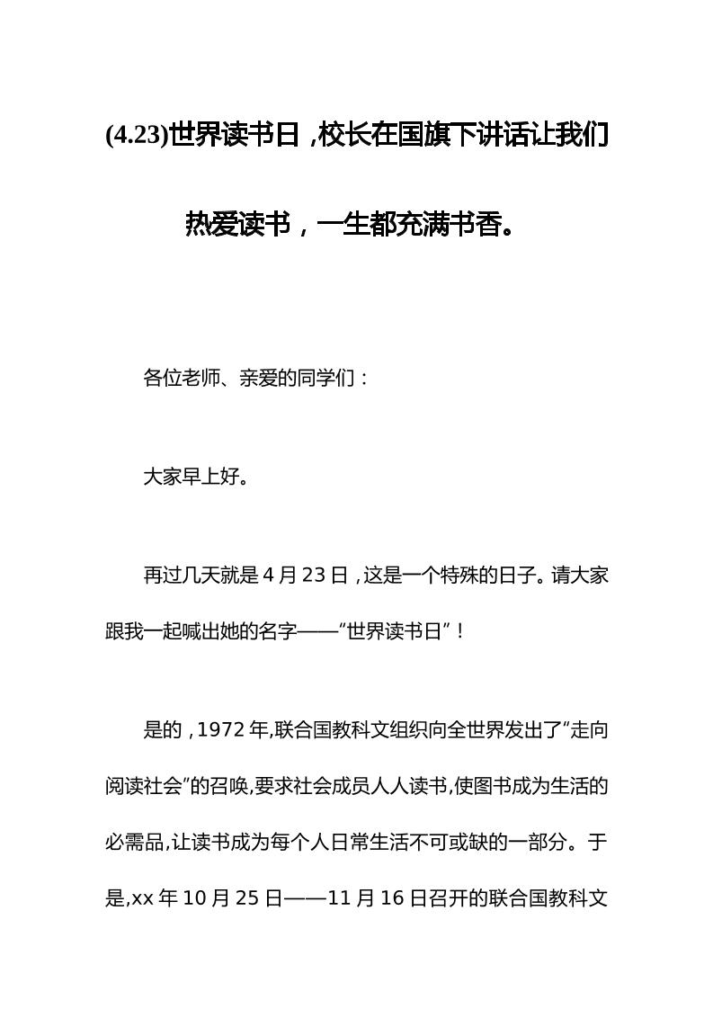 (4.23)世界读书日,校长在国旗下讲话让我们热爱读书,一生都充满书香。