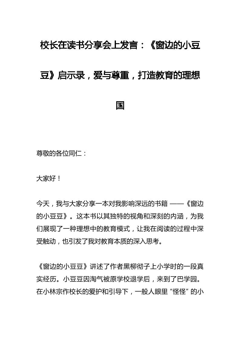 校长在读书分享会上发言:《窗边的小豆豆》启示录,爱与尊重,打造教育的理想国 05-02 发言稿 1.16k ——预览已结束,还剩3页未读——开通会员后可免费下载高清完整文档 资源下载此资源下载价格为15米,VIP免费,请先登录 资源下载下载价格15 米VIP免费请先登录 0 0