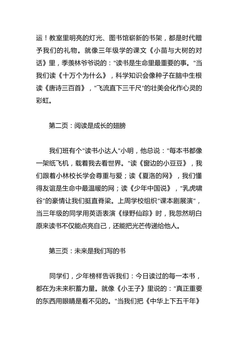 2025年世界读书日小学生国旗下讲话稿:让书籍成为我们飞翔的翅膀 05-03 国旗下讲话 1.3k ——预览已结束,还剩1页未读——开通会员后可免费下载高清完整文档 资源下载此资源下载价格为15米,VIP免费,请先登录 资源下载下载价格15 米VIP免费请先登录 0 0