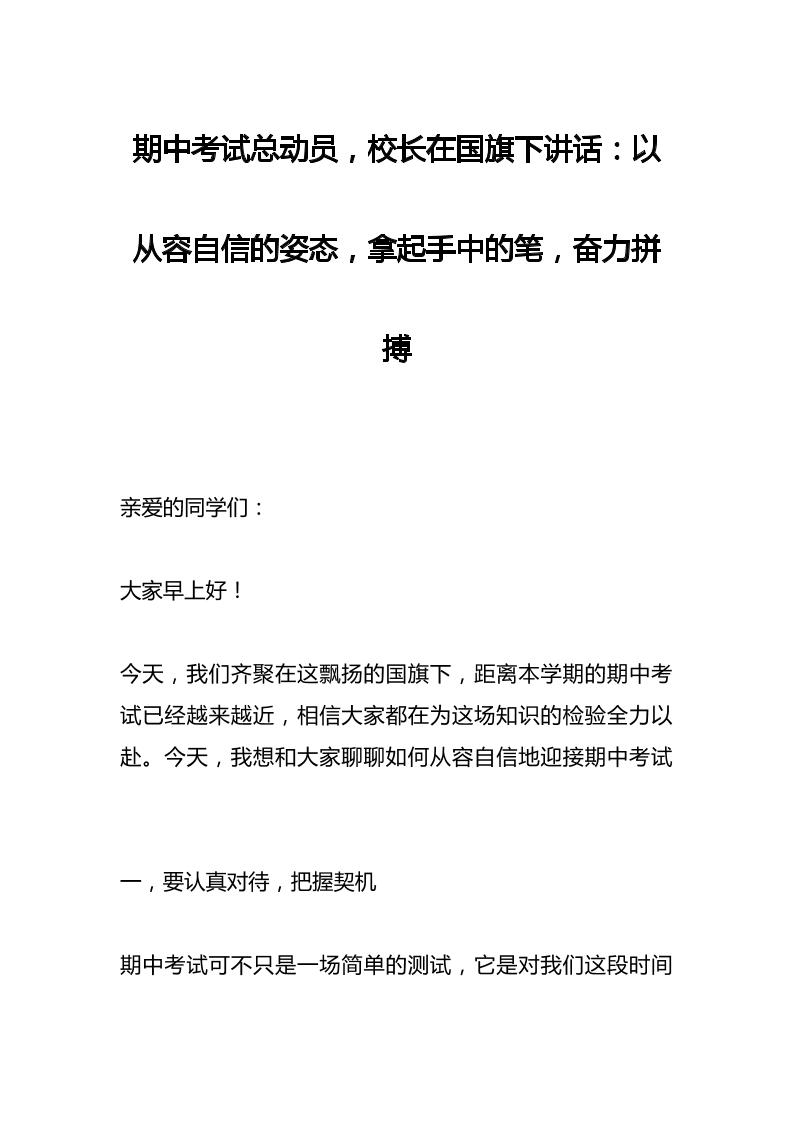 期中考试总动员,校长在国旗下讲话:以从容自信的姿态,拿起手中的笔,奋力拼搏