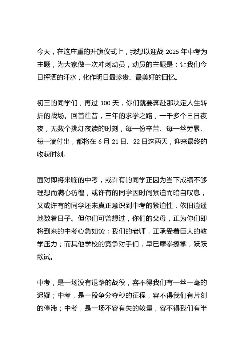 2025中考冲刺动员誓师大会,校长讲话:让我们今日挥洒的汗水,化作明日最珍贵、最美好的回忆