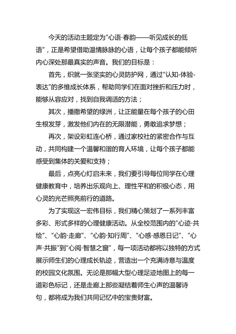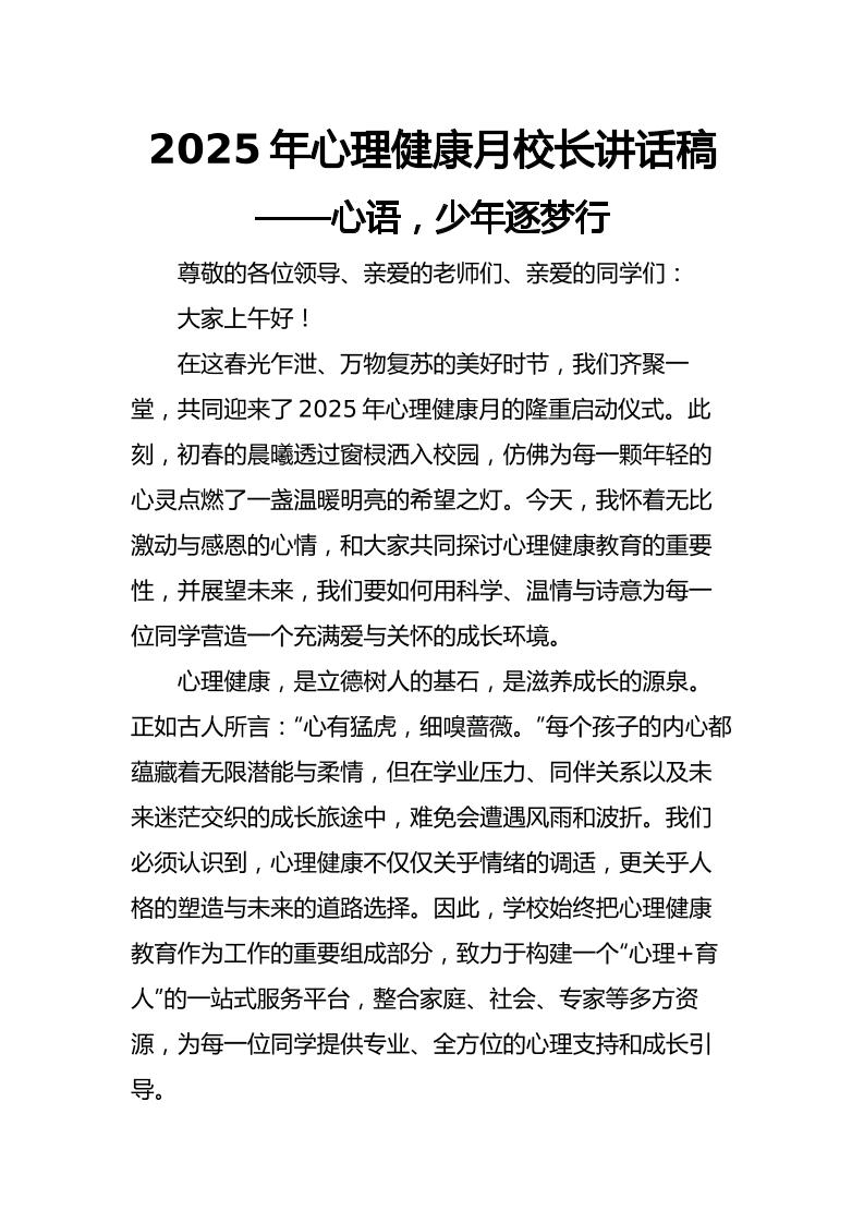 2025年心理健康月校长讲话稿 05-04 发言稿 850 ——预览已结束,还剩1页未读——开通会员后可免费下载高清完整文档 资源下载此资源下载价格为15米,VIP免费,请先登录 资源下载下载价格15 米VIP免费请先登录 0 0