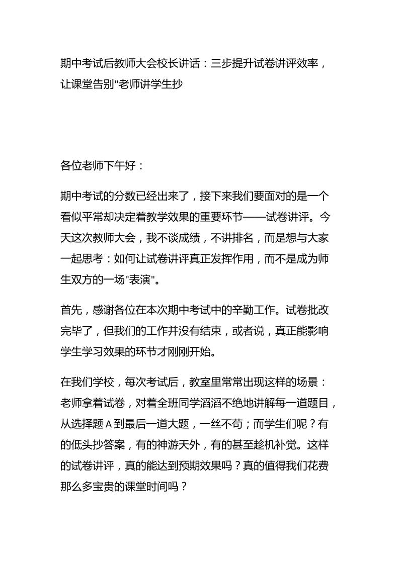 期中考试后教师大会校长讲话:三步提升试卷讲评效率,让课堂告别老师讲学生抄 05-07 发言稿 801 ——预览已结束,还剩7页未读——开通会员后可免费下载高清完整文档 资源下载此资源下载价格为15米,VIP免费,请先登录 资源下载下载价格15 米VIP免费请先登录 0 0