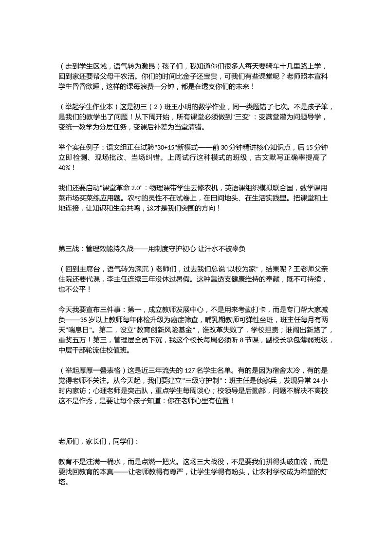 县域初中振兴三大战役:校长强调打好教师能力升级战、课堂效率突围战、管理效能持久战 05-08 发言稿 530 ——预览已结束,还剩1页未读——开通会员后可免费下载高清完整文档 资源下载此资源下载价格为15米,VIP免费,请先登录 资源下载下载价格15 米VIP免费请先登录 0 0