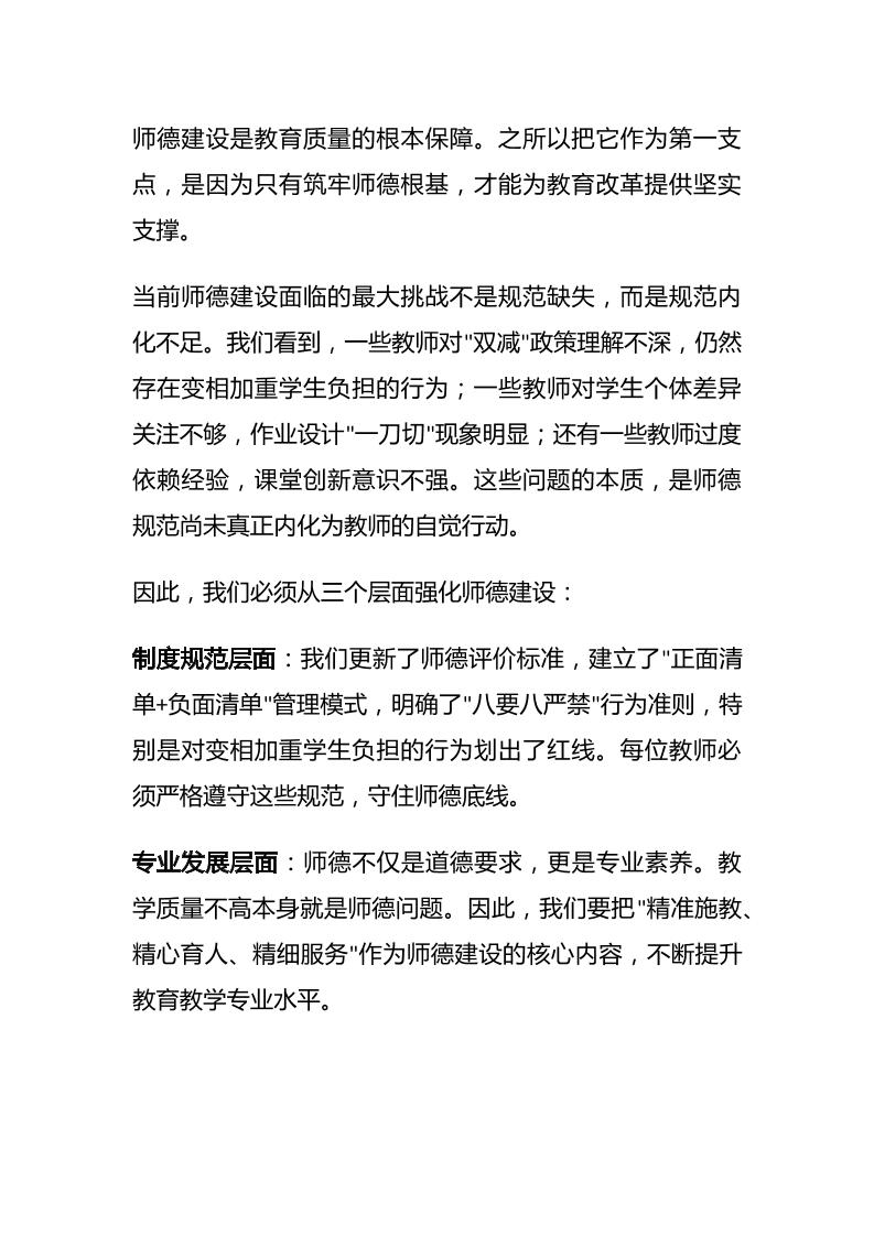 师德师风建设专题推进会校长讲话:四大支点撬动教改:从师德突破到质量提升