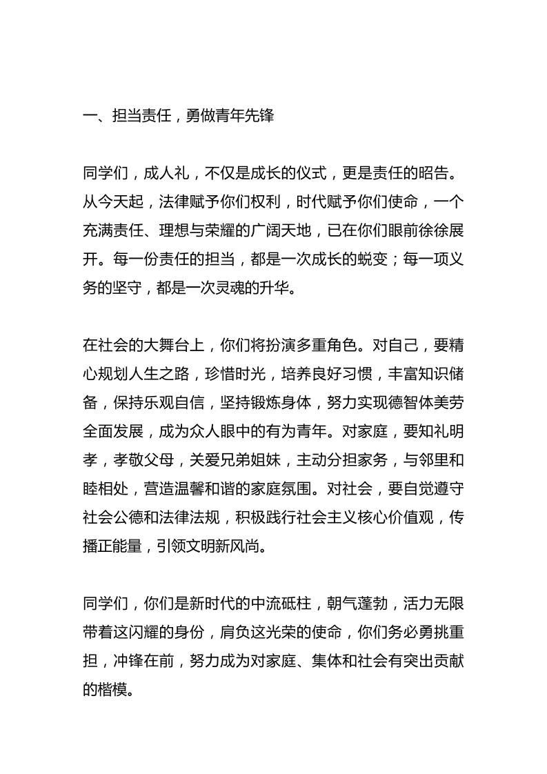 校长在成人礼上致辞:扛起责任,锚定志向,奔赴奋斗新程 05-09 发言稿 613 ——预览已结束,还剩3页未读——开通会员后可免费下载高清完整文档 资源下载此资源下载价格为15米,VIP免费,请先登录 资源下载下载价格15 米VIP免费请先登录 0 0