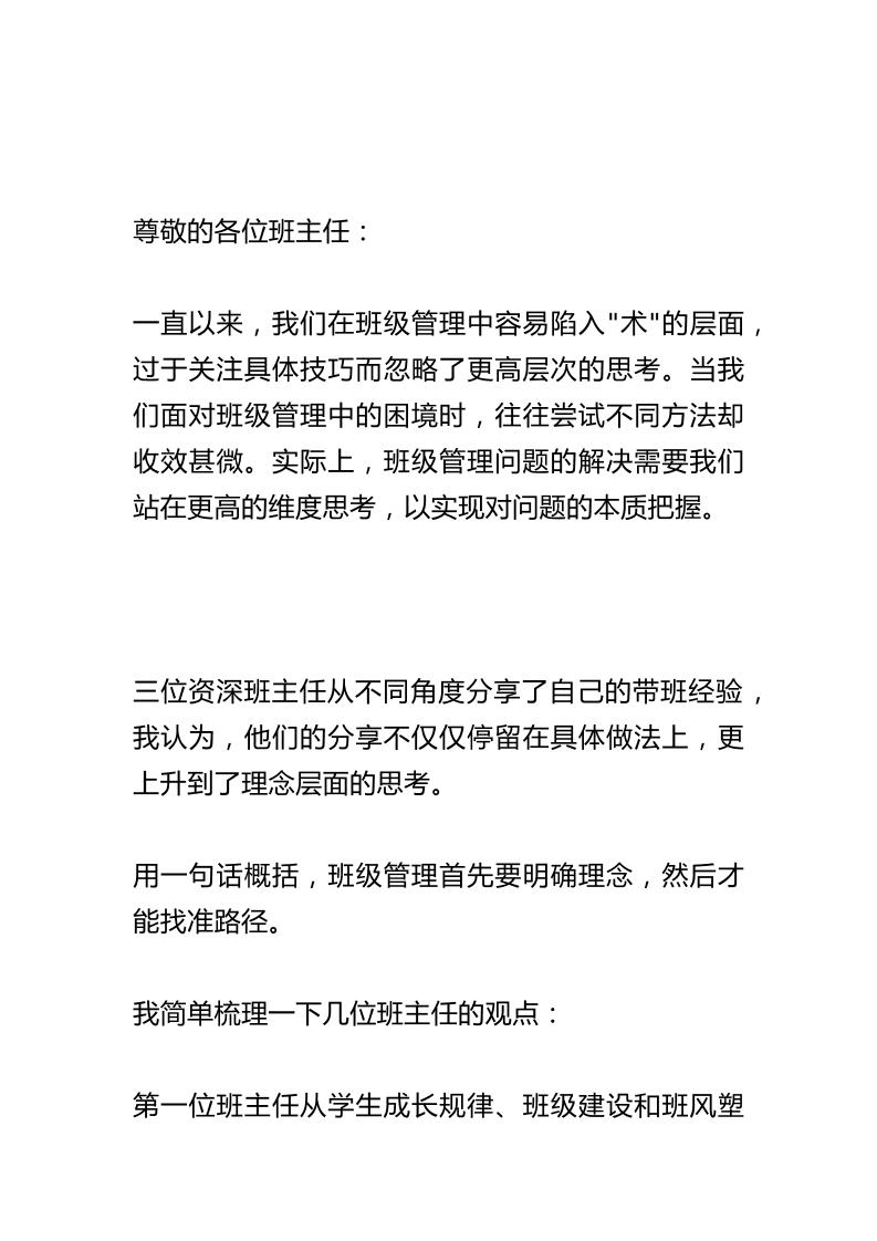 校长在班主任经验交流分享上讲话:班级管理不在管得多!而在懂得放! 05-09 发言稿 886 ——预览已结束,还剩2页未读——开通会员后可免费下载高清完整文档 资源下载此资源下载价格为15米,VIP免费,请先登录 资源下载下载价格15 米VIP免费请先登录 0 0
