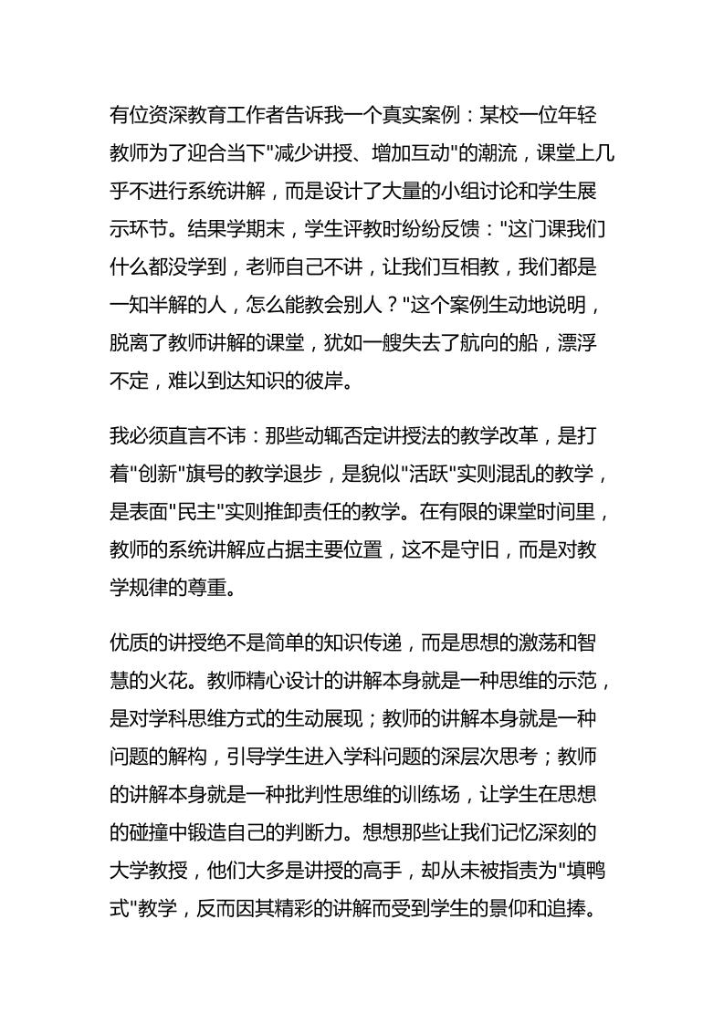 校长岗位思考:为什么说轻视讲授教学法是最大的教育灾难? 05-09 发言稿 734 ——预览已结束,还剩1页未读——开通会员后可免费下载高清完整文档 资源下载此资源下载价格为15米,VIP免费,请先登录 资源下载下载价格15 米VIP免费请先登录 0 0