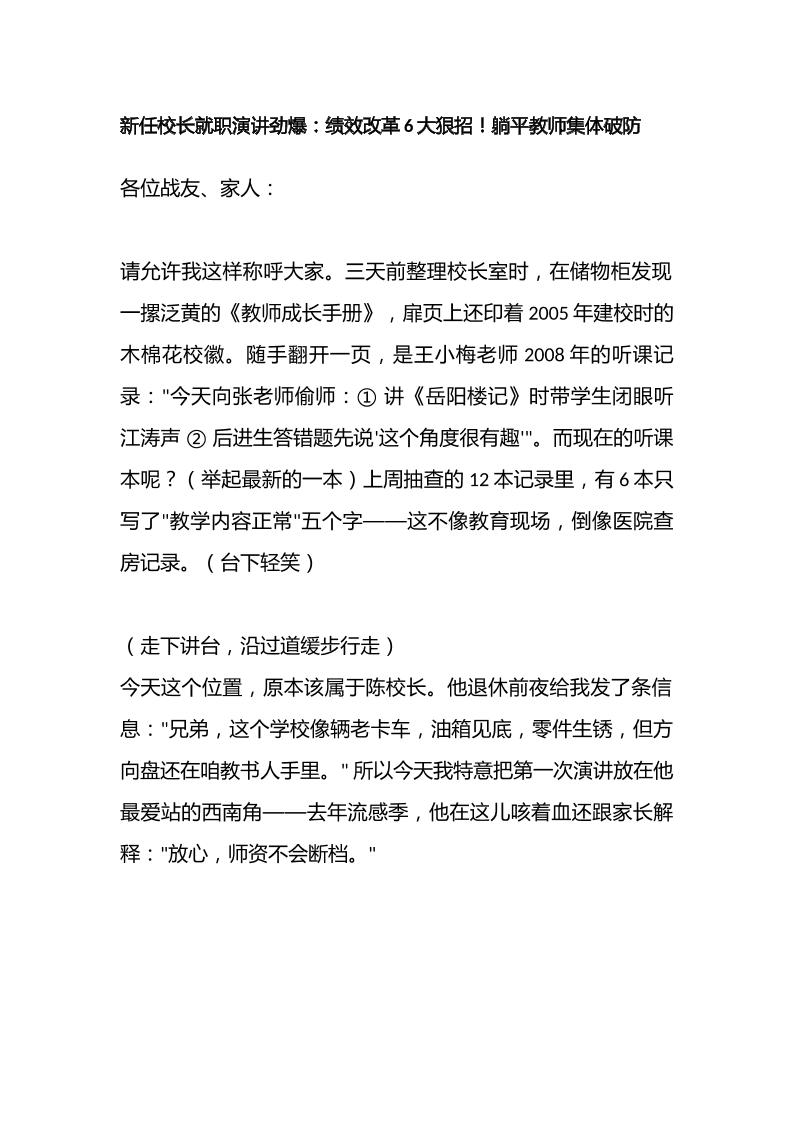 新任校长就职演讲劲爆:绩效改革6大狠招!躺平教师集体破防 05-10 发言稿 524 ——预览已结束,还剩6页未读——开通会员后可免费下载高清完整文档 资源下载此资源下载价格为15米,VIP免费,请先登录 资源下载下载价格15 米VIP免费请先登录 0 0