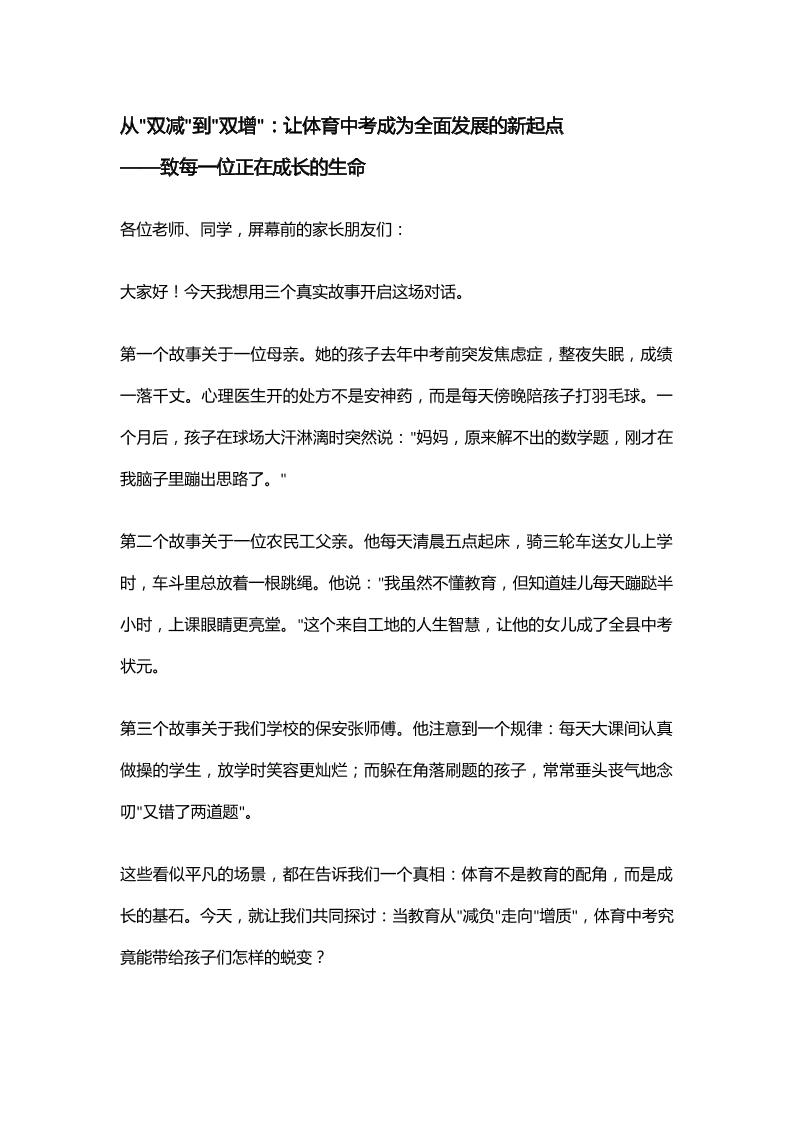 中学校长在全体师生大会上讲话:从双减到双增,体育中考如何赋能学生全面发展 05-12 发言稿 937 ——预览已结束,还剩4页未读——开通会员后可免费下载高清完整文档 资源下载此资源下载价格为15米,VIP免费,请先登录 资源下载下载价格15 米VIP免费请先登录 0 0