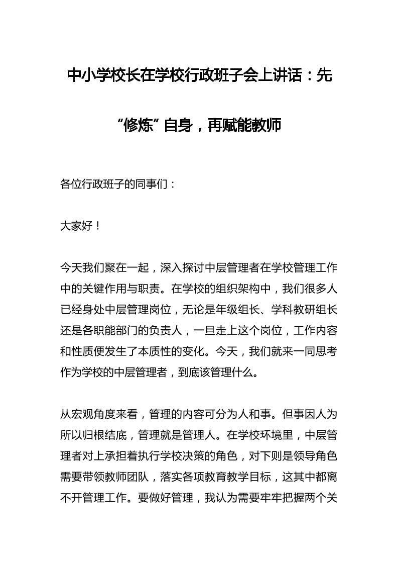 中小学校长在学校行政班子会上讲话:先“修炼”自身,再赋能教师