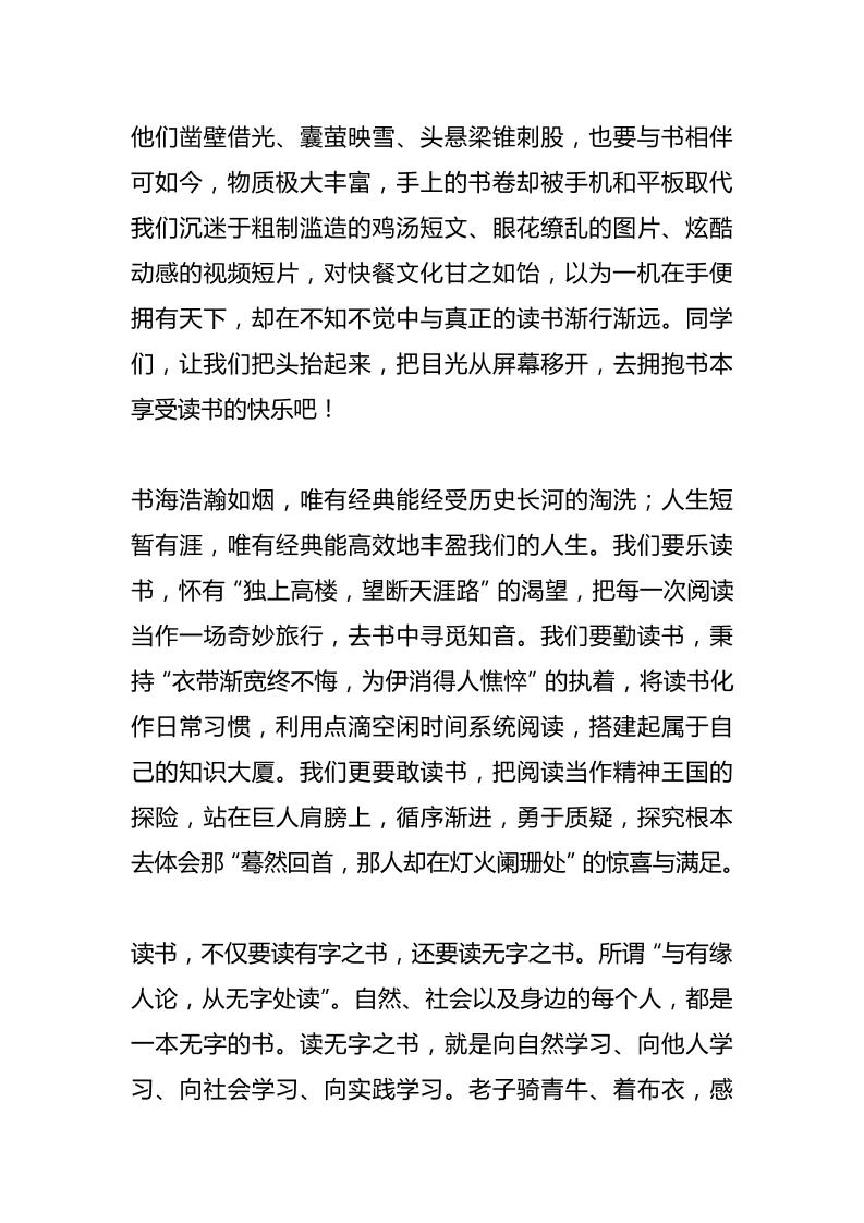 中小学校长在校园读书节上讲话:别让手机“挤走”了书本 05-12 发言稿 921 ——预览已结束,还剩2页未读——开通会员后可免费下载高清完整文档 资源下载此资源下载价格为15米,VIP免费,请先登录 资源下载下载价格15 米VIP免费请先登录 0 0
