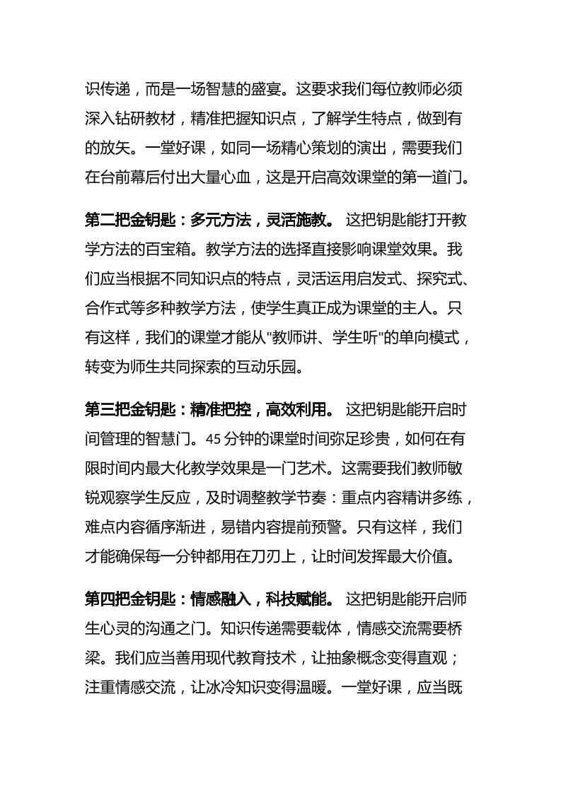 抓课堂质量会议校长讲话:解锁高效课堂:四把金钥匙,四道保险锁 05-12 发言稿 779 ——预览已结束,还剩3页未读——开通会员后可免费下载高清完整文档 资源下载此资源下载价格为15米,VIP免费,请先登录 资源下载下载价格15 米VIP免费请先登录 0 0