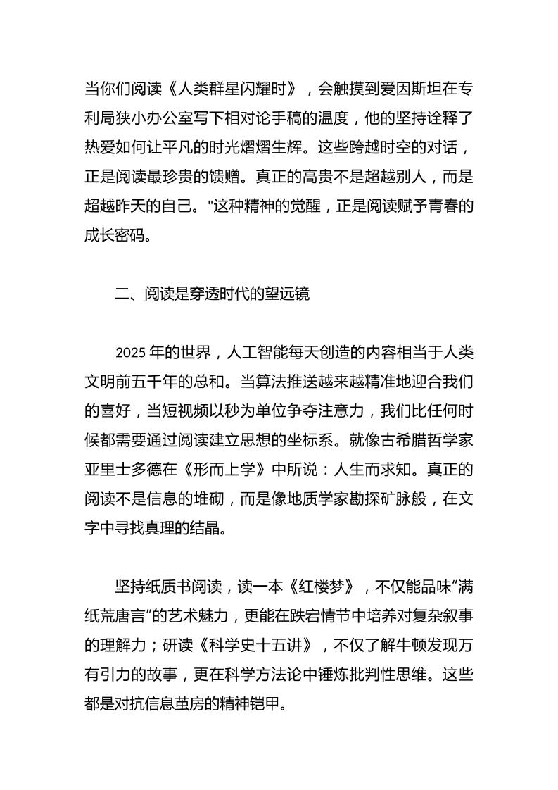 2025年世界读书日与青春同行的阅读之旅致辞:以书为舟,乘风破浪 05-13 发言稿 1.38k ——预览已结束,还剩2页未读——开通会员后可免费下载高清完整文档 资源下载此资源下载价格为15米,VIP免费,请先登录 资源下载下载价格15 米VIP免费请先登录 0 0