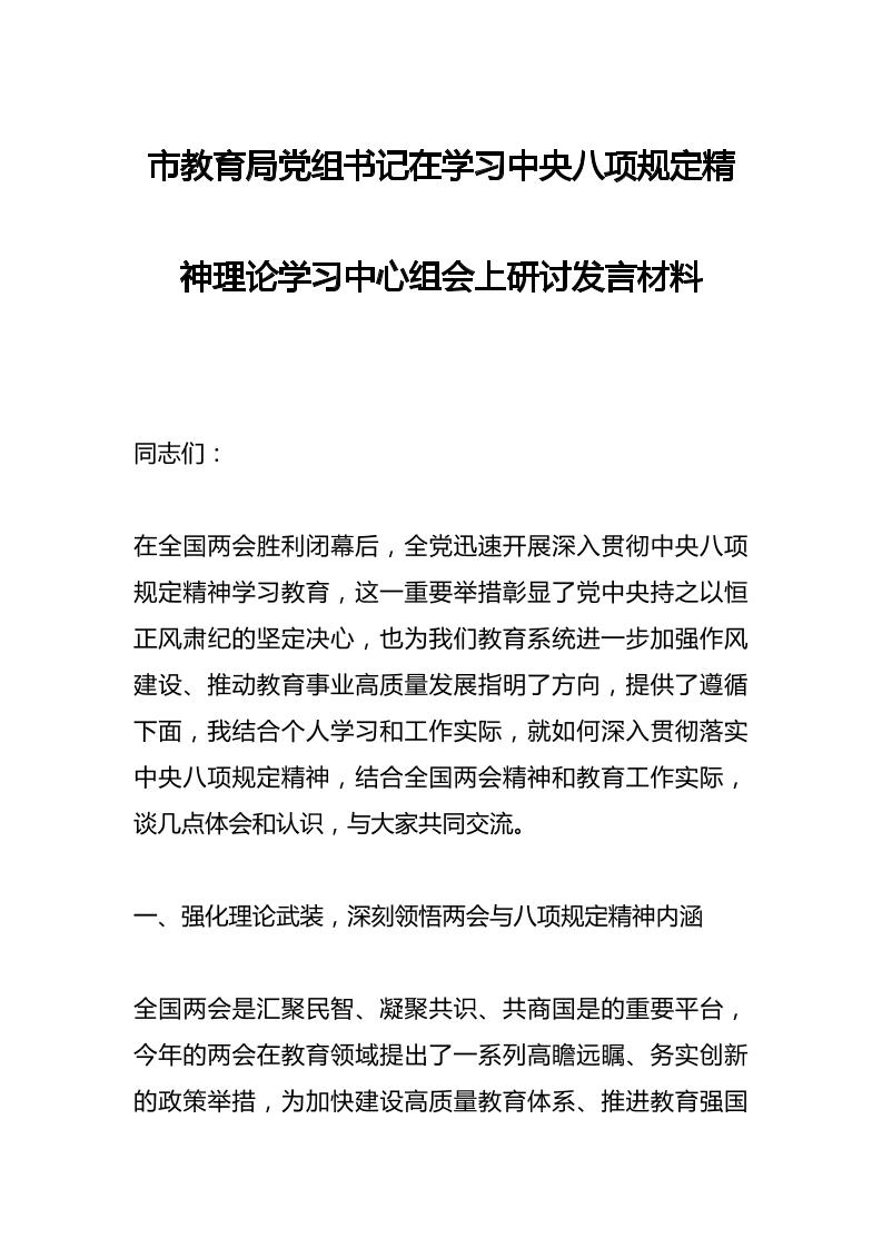 市教育局党组书记在学习中央八项规定精神理论学习中心组会上研讨发言材料 05-13 发言稿 1.15k ——预览已结束,还剩9页未读——开通会员后可免费下载高清完整文档 资源下载此资源下载价格为15米,VIP免费,请先登录 资源下载下载价格15 米VIP免费请先登录 0 0