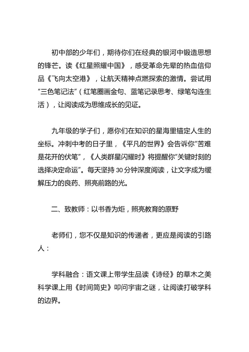 2025年世界读书日致全体师生的阅读倡议书——星河为卷,青春作笔