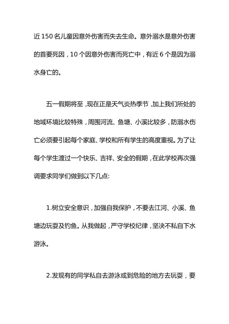 五一节前防溺水安全教育,校长讲话珍爱生命、预防溺水 05-20 发言稿 996 ——预览已结束,还剩3页未读——开通会员后可免费下载高清完整文档 资源下载此资源下载价格为15米,VIP免费,请先登录 资源下载下载价格15 米VIP免费请先登录 0 0