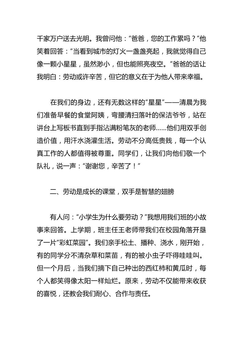 劳动点亮童年,双手创造未来——2025年五一劳动节学生国旗下演讲稿 05-21 发言稿 611 ——预览已结束,还剩2页未读——开通会员后可免费下载高清完整文档 资源下载此资源下载价格为15米,VIP免费,请先登录 资源下载下载价格15 米VIP免费请先登录 0 0
