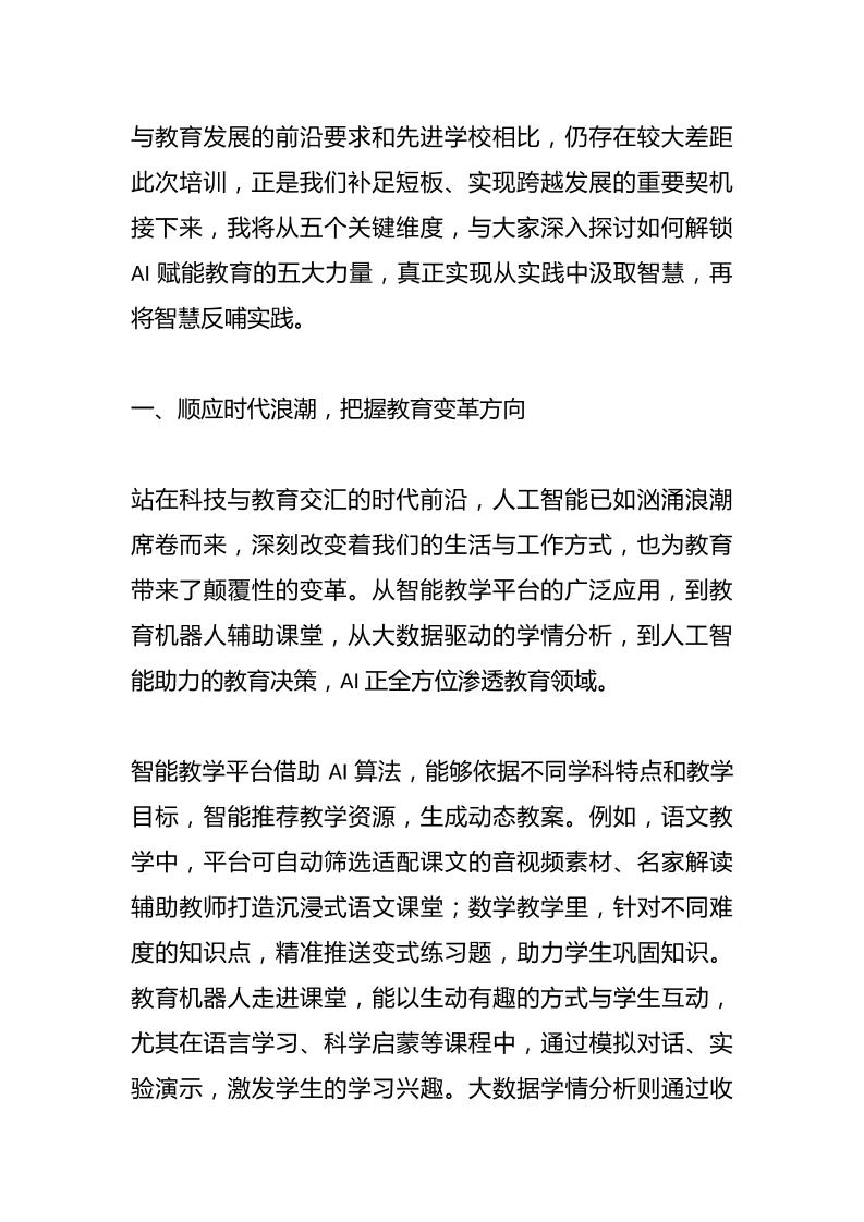 校长在人工智能赋能教育培训会上发言:从教室到“智”室,AI教咱怎么教 05-21 发言稿 1.34k ——预览已结束,还剩6页未读——开通会员后可免费下载高清完整文档 资源下载此资源下载价格为15米,VIP免费,请先登录 资源下载下载价格15 米VIP免费请先登录 0 0