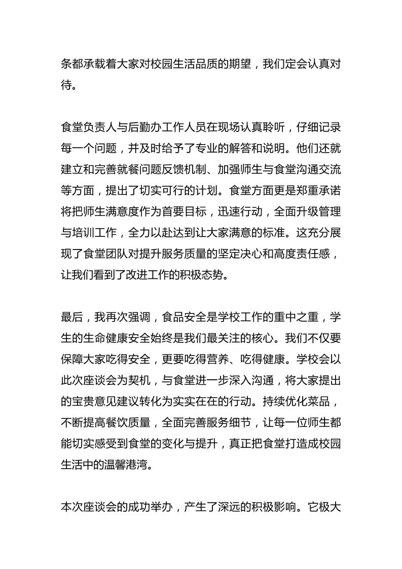 校园食品安全座谈会后,校长总结发言:校园食品安全,我们绝不妥协!