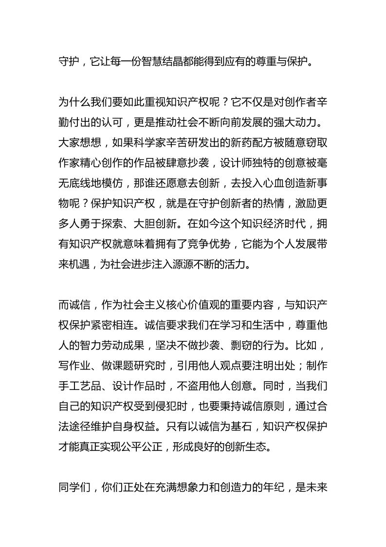4.26世界知识产权日,校长在国旗下讲话:树立知识产权意识,守护创新火种