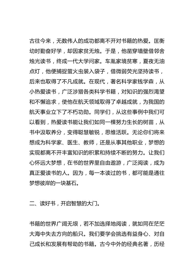 世界读书日,校长在国旗下讲话:解锁“爱读书、读好书、善读书”的超能力,让你人生开挂 05-26 发言稿 1.39k ——预览已结束,还剩2页未读——开通会员后可免费下载高清完整文档 资源下载此资源下载价格为15米,VIP免费,请先登录 资源下载下载价格15 米VIP免费请先登录 0 0