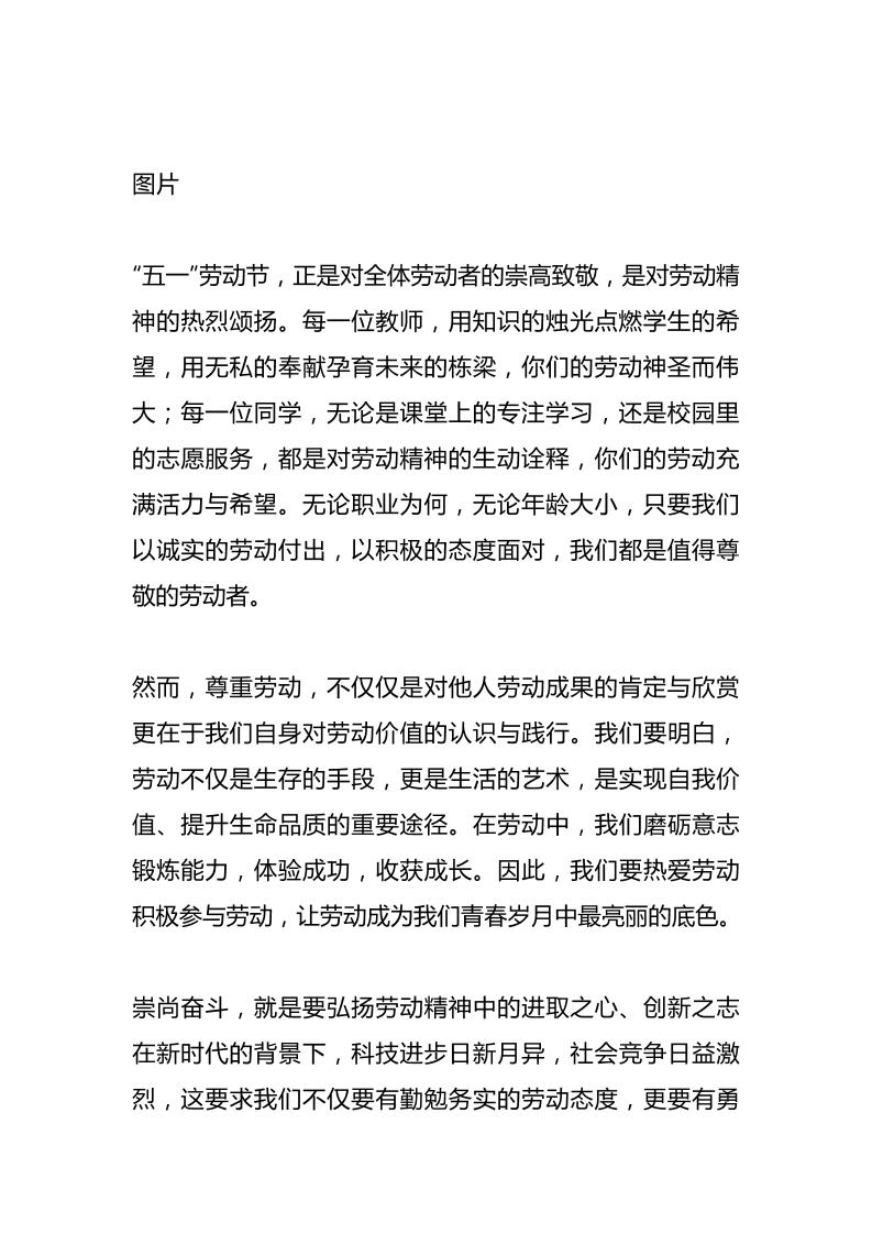 校长在国旗下讲话:尊重劳动,崇尚奋斗,共筑美好未来 05-26 发言稿 898 ——预览已结束,还剩1页未读——开通会员后可免费下载高清完整文档 资源下载此资源下载价格为15米,VIP免费,请先登录 资源下载下载价格15 米VIP免费请先登录 0 0
