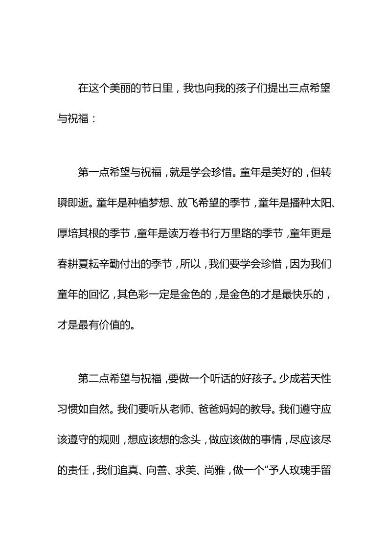 六一儿童节,校长致辞要做一个不听话的好孩子 05-29 发言稿 586 ——预览已结束,还剩2页未读——开通会员后可免费下载高清完整文档 资源下载此资源下载价格为15米,VIP免费,请先登录 资源下载下载价格15 米VIP免费请先登录 0 0