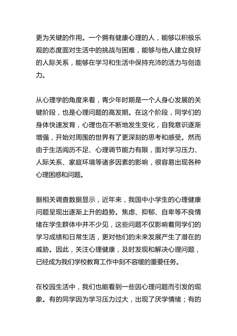 2025中小学学生心理健康宣传教育月启动仪式上的校长讲话稿 06-09 发言稿 783 ——预览已结束,还剩6页未读——开通会员后可免费下载高清完整文档 资源下载此资源下载价格为15米,VIP免费,请先登录 资源下载下载价格15 米VIP免费请先登录 0 0