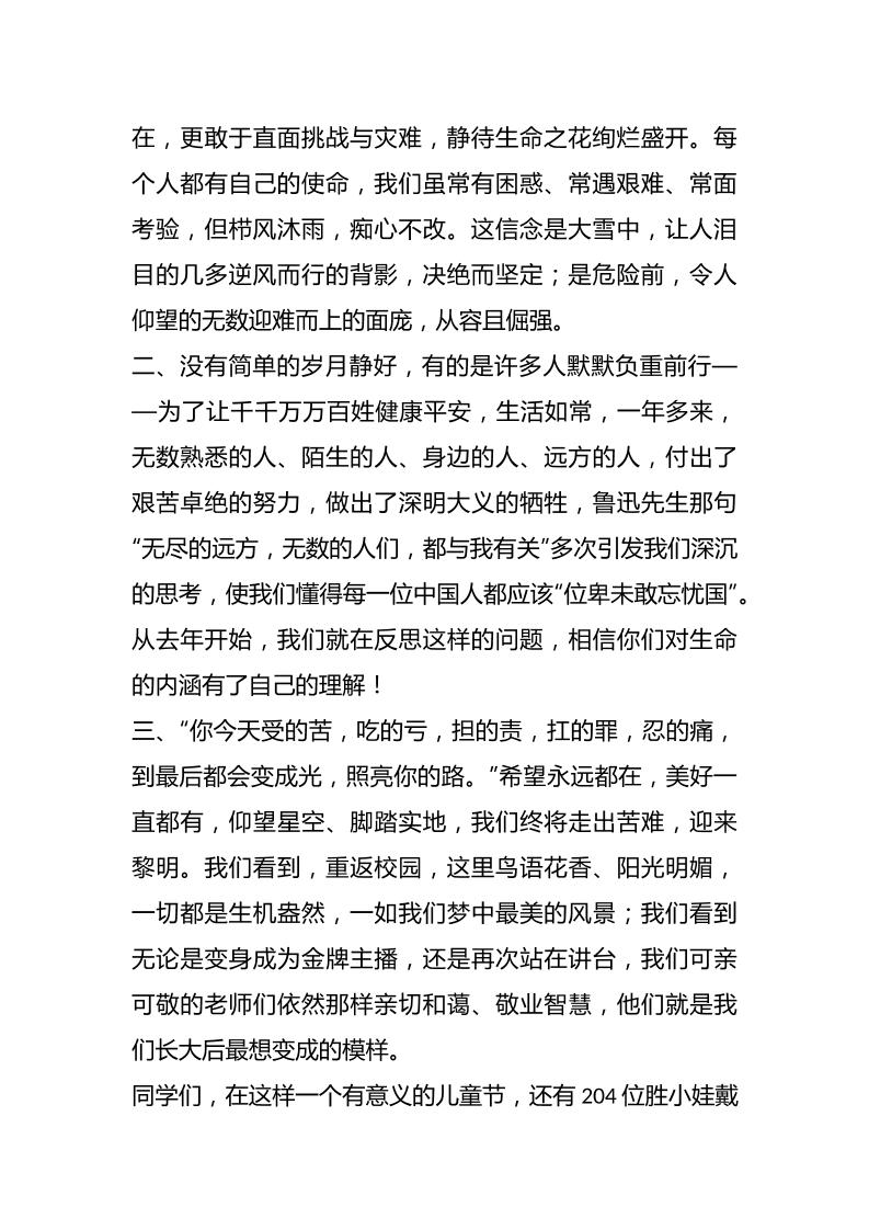 “六一”儿童节,校长精彩致辞,并送给大家3句话 06-09 发言稿 685 ——预览已结束,还剩1页未读——开通会员后可免费下载高清完整文档 资源下载此资源下载价格为15米,VIP免费,请先登录 资源下载下载价格15 米VIP免费请先登录 0 0