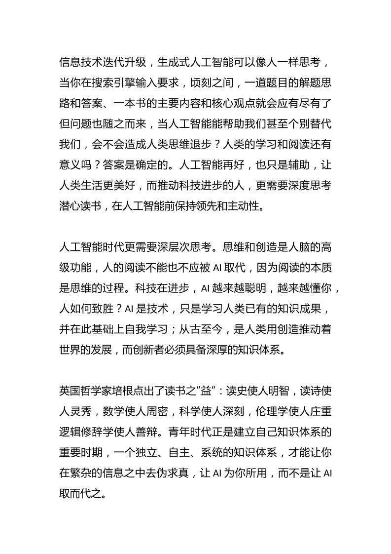 某中学校长在世界读书日的讲话:智能时代用潜心读书滋养一片精神绿地 06-09 发言稿 540 ——预览已结束,还剩2页未读——开通会员后可免费下载高清完整文档 资源下载此资源下载价格为15米,VIP免费,请先登录 资源下载下载价格15 米VIP免费请先登录 0 0