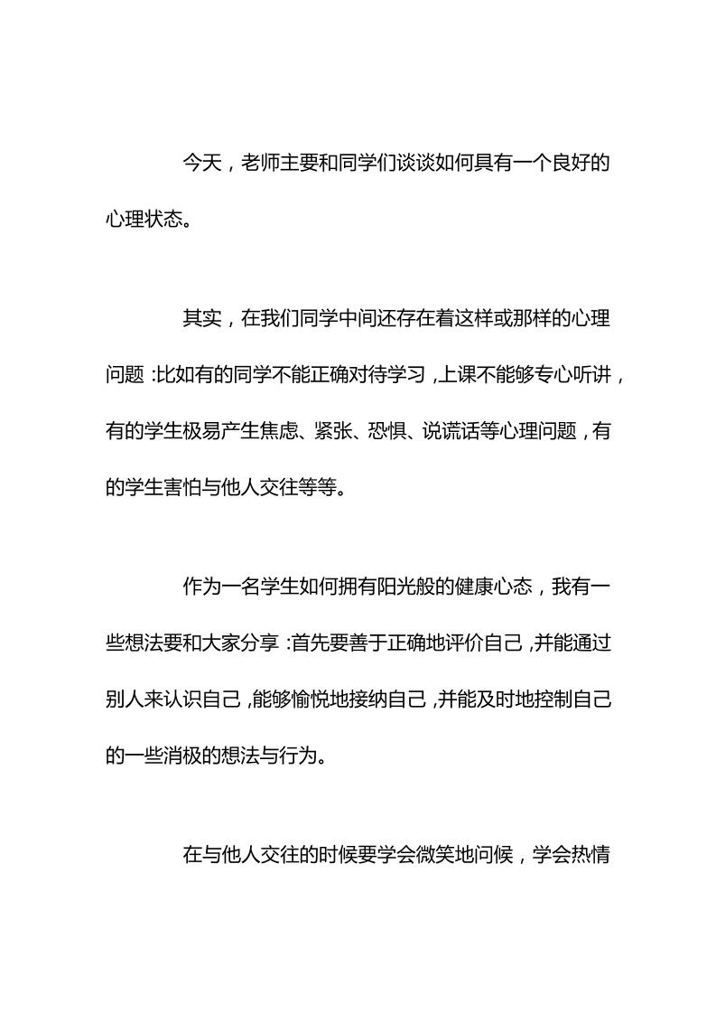 心理健康教育主题,校长在国旗下讲话拥抱健康阳光成长