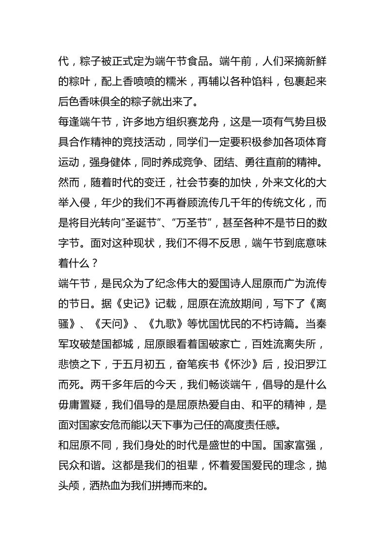 端午节校长在国旗下讲话:遥思端午情,不负少年志 06-10 国旗下讲话 872 ——预览已结束,还剩1页未读——开通会员后可免费下载高清完整文档 资源下载此资源下载价格为15米,VIP免费,请先登录 资源下载下载价格15 米VIP免费请先登录 0 0
