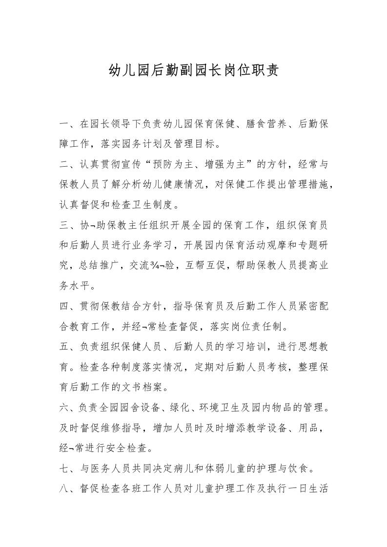 幼儿园后勤副园长岗位职责 06-27 管理相关 810 ——预览已结束,还剩1页未读——开通会员后可免费下载高清完整文档 资源下载此资源下载价格为15米,VIP免费,请先登录 资源下载下载价格15 米VIP免费请先登录 0 0