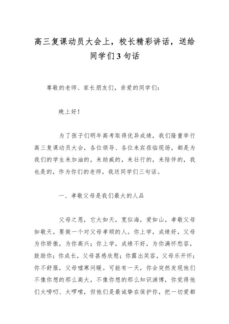 高三复课动员大会上,校长精彩讲话,送给同学们3句话 06-28 国旗下讲话 1.06k ——预览已结束,还剩2页未读——开通会员后可免费下载高清完整文档 资源下载此资源下载价格为15米,VIP免费,请先登录 资源下载下载价格15 米VIP免费请先登录 0 0