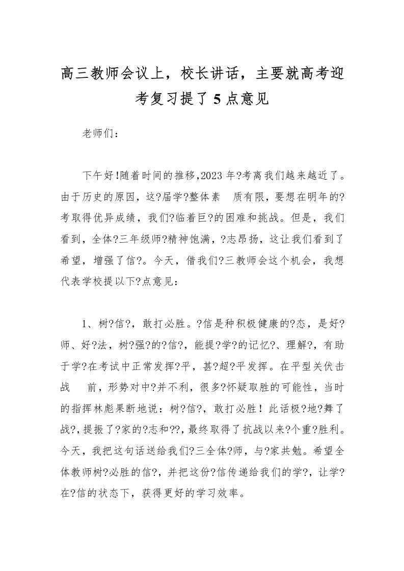 高三教师会议上,校长讲话,主要就高考迎考复习提了5点意见 06-28 国旗下讲话 566 ——预览已结束,还剩1页未读——开通会员后可免费下载高清完整文档 资源下载此资源下载价格为15米,VIP免费,请先登录 资源下载下载价格15 米VIP免费请先登录 0 0