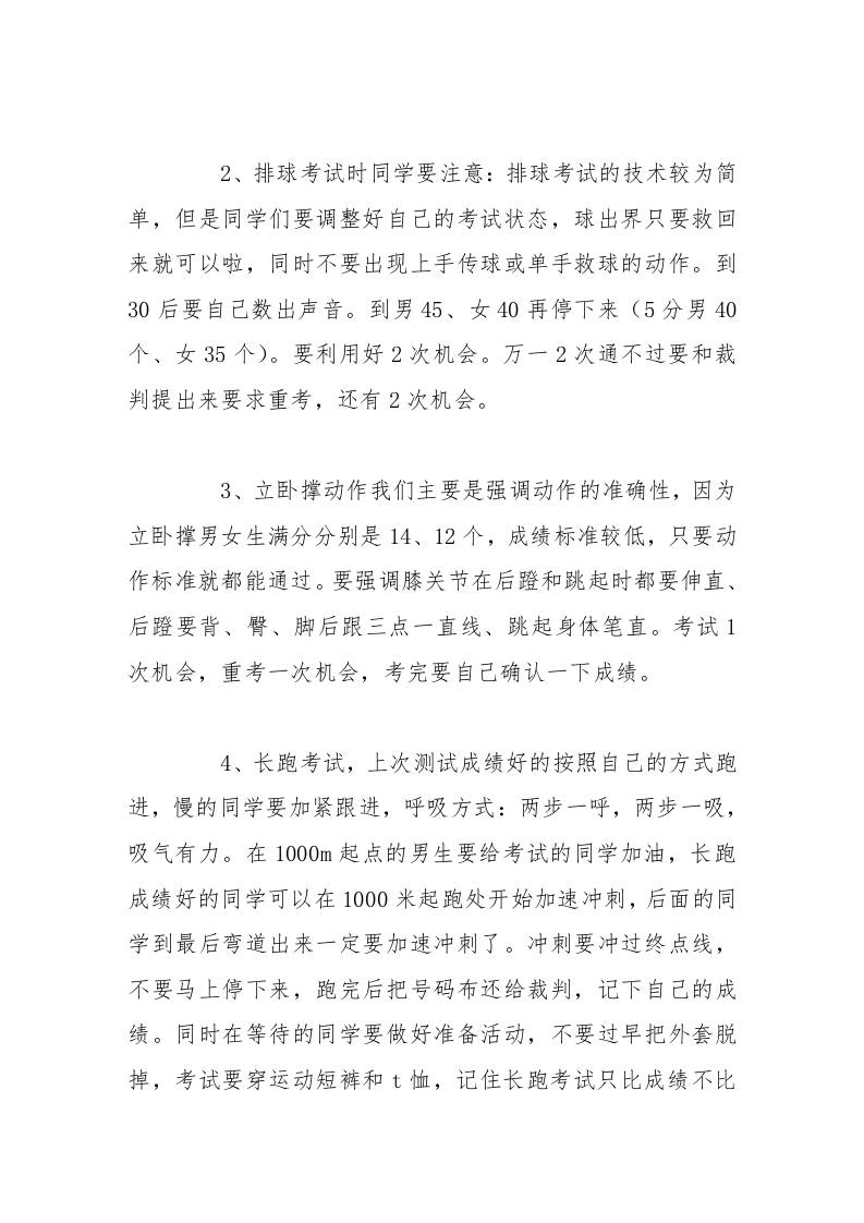 体育中考动员大会上,校长讲话,先讲安全,再讲了考试中的一些注意事项