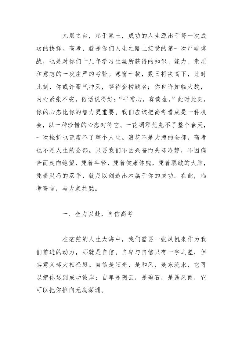 校长高考前动员会上讲话人人考出最佳成绩,个个金榜题名 06-29 国旗下讲话 940 ——预览已结束,还剩4页未读——开通会员后可免费下载高清完整文档 资源下载此资源下载价格为15米,VIP免费,请先登录 资源下载下载价格15 米VIP免费请先登录 0 0