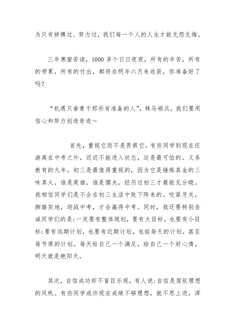 再过180天就要中考,校长励志讲话九年磨一剑,中考越雄关。让我们今天的拼搏成为明天最美好的回忆 06-30 国旗下讲话 799 ——预览已结束,还剩4页未读——开通会员后可免费下载高清完整文档 资源下载此资源下载价格为15米,VIP免费,请先登录 资源下载下载价格15 米VIP免费请先登录 0 0
