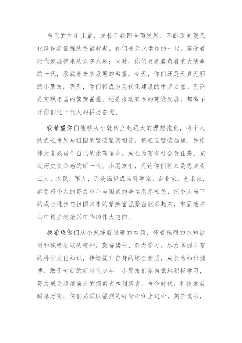 县级领导在2025年“六一”儿童节庆祝大会上的致辞 07-01 发言稿 926 ——预览已结束,还剩3页未读——开通会员后可免费下载高清完整文档 资源下载此资源下载价格为15米,VIP免费,请先登录 资源下载下载价格15 米VIP免费请先登录 0 0