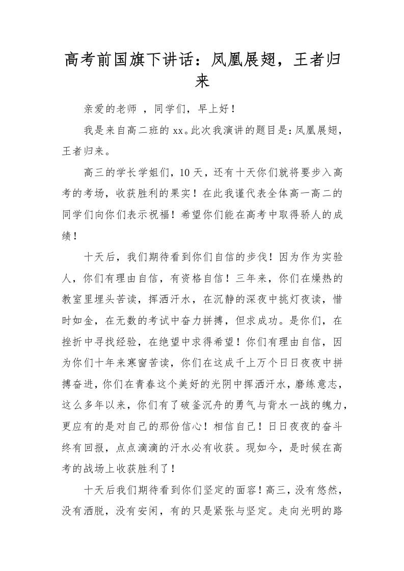 高考前国旗下讲话:凤凰展翅,王者归来 07-03 国旗下讲话 859 ——预览已结束,还剩1页未读——开通会员后可免费下载高清完整文档 资源下载此资源下载价格为15米,VIP免费,请先登录 资源下载下载价格15 米VIP免费请先登录 0 0