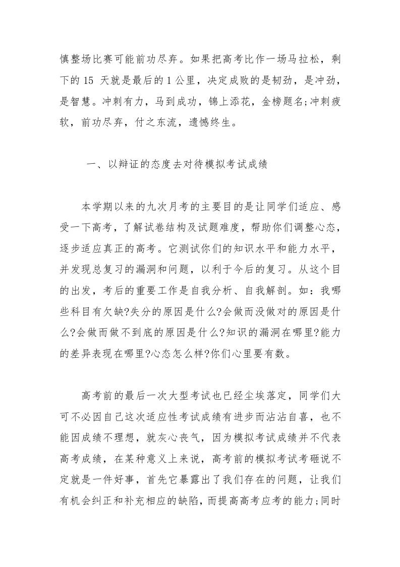 高考前15天怎么度过校长精彩讲话拼搏三年,送走无悔风雨寒暑,冲刺15天,迎来决战巅峰时刻 07-05 发言稿 556 ——预览已结束,还剩4页未读——开通会员后可免费下载高清完整文档 资源下载此资源下载价格为15米,VIP免费,请先登录 资源下载下载价格15 米VIP免费请先登录 0 0
